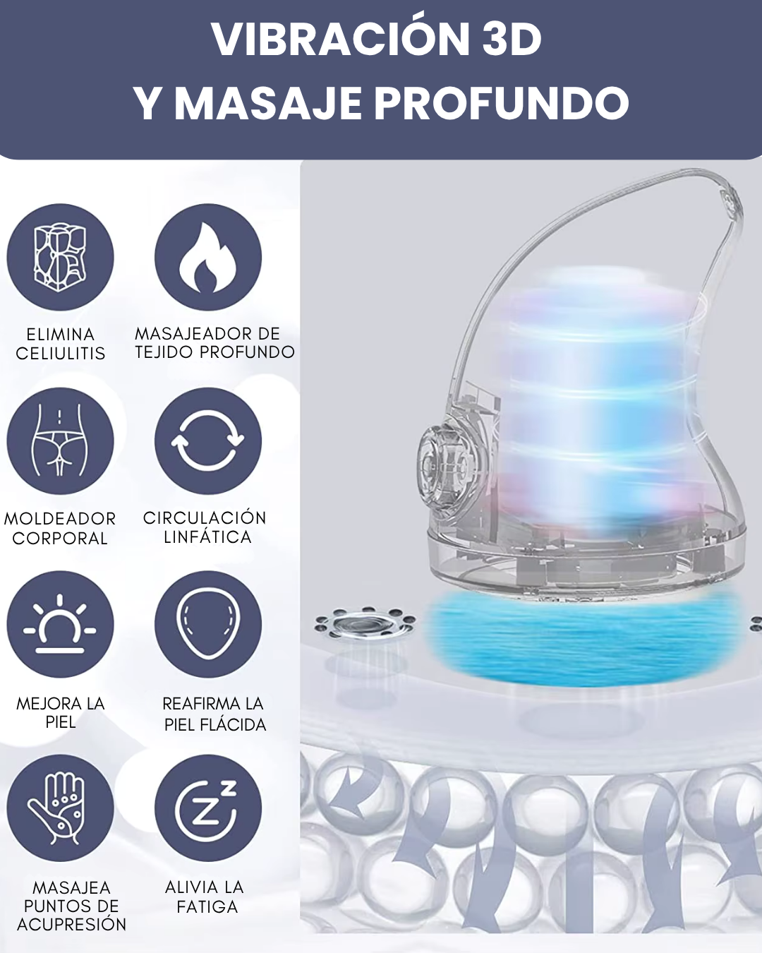 Tonifica, moldea y activa tu circulación en cada sesión. Ayuda a romper depósitos de grasa localizada, mejorando la firmeza y el aspecto de tu piel.